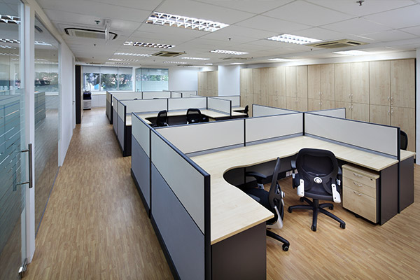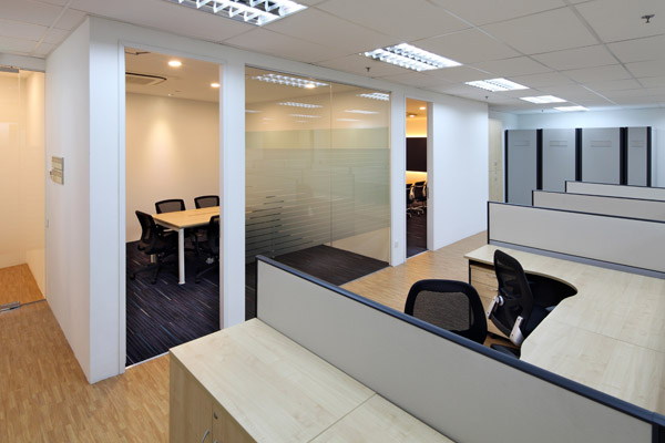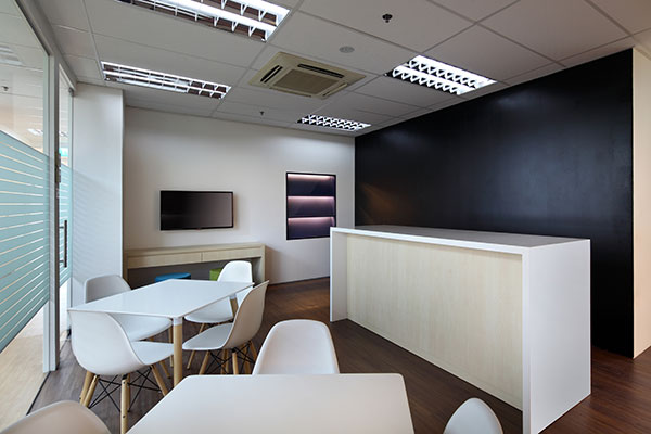 The Operative space demarcated by vinyl planks flooring whereby the work surfaces of panel based system and free-standing furniture are finished in Oak Melamine to complement the warm tone color concept. Blue tones tufted carpet with textured loop represents Amcor’s corporate color – High usage of Enclosure Spaces consisting of Meeting, Conference and Phone Booth spaces has carpeted against heavy foot traffic and resistant to life’s spills like never before. In the Wet Pantry space, a feature wall painted in ideal chalk board paint casual informal interactions or presentations. An island counter for storage compartments of eco-friendly recycle waste bins, and serves as a counter for interactive discussion over quick snacks and refreshments. The Rest rooms space was given a total face lift from the existing standard by the building. New toilet fixtures and accessories were installed to enhance the facelift.